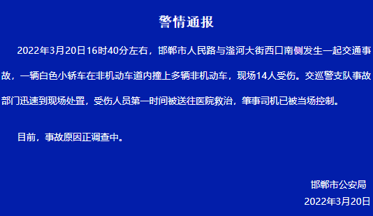 河北邯郸警方通报“轿车冲撞人群”:14人受伤,肇事司机被当场控制 |
