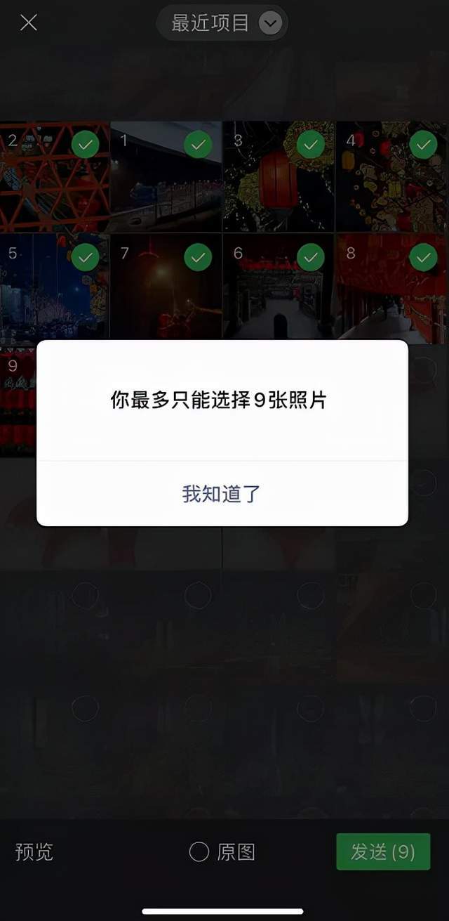 另外,现在发送图片时,微信中会显示选取的图片数量和发送顺序: