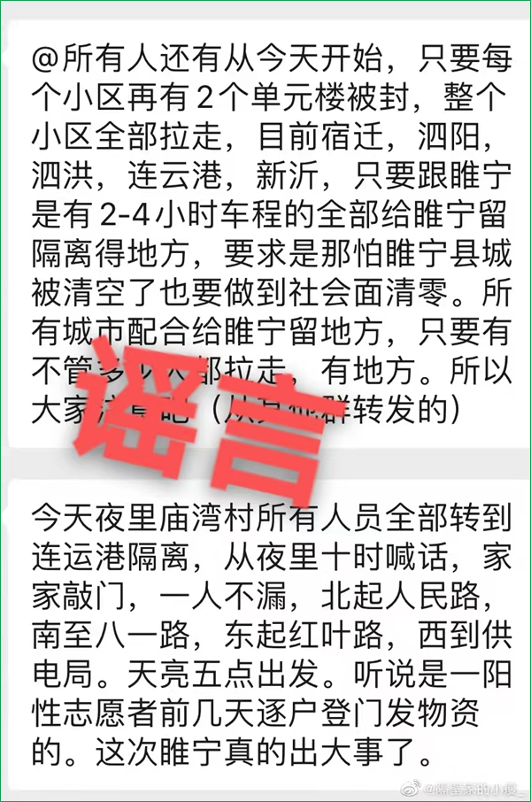 辟谣战疫|网传“徐州睢宁只要小区再有2个单元被封,整个小区全部拉走”等消息不实! |