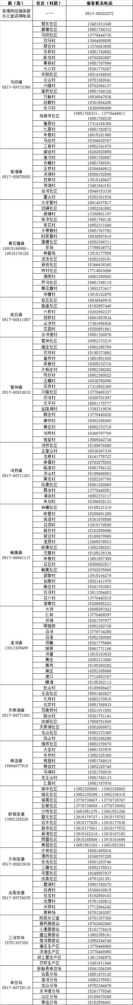 淮安市疫情防控报备联系电话公布 |